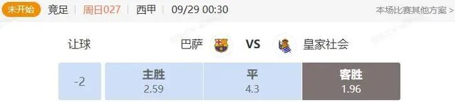 上场比赛巴塞罗那被奥维多惊出一身冷汗,上半场落后于这支升班马,但随后连入三球,最终以3比1获胜,目前少赛一场仅落后皇马2分。皇家社会本赛季开局令人失望,目前排名积分榜第16位,上一场击败马洛卡拿下赛季首胜。皇家社会上赛季在西甲排名第11位,是他们自2018年以来最低排名,不足以挑战重返欧冠的资格。而自2016年4月以来,他们仅战胜过巴萨2次。