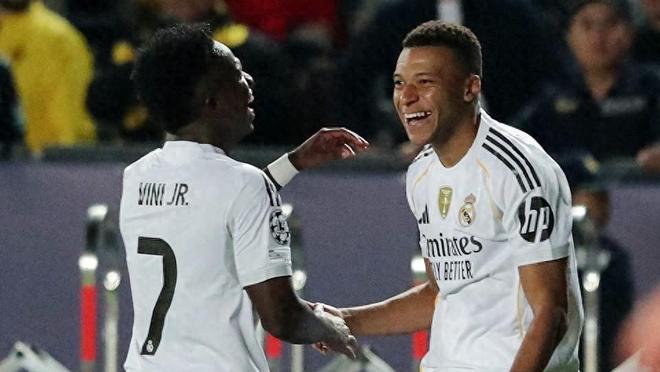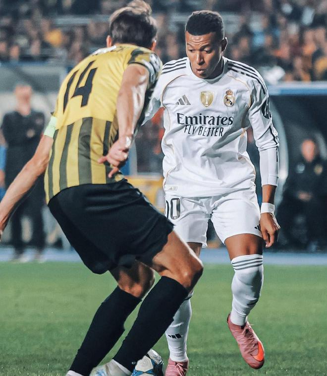比赛第25分钟,皇马获得点球机会,姆巴佩冷静主罚命中,为球队首开纪录。
