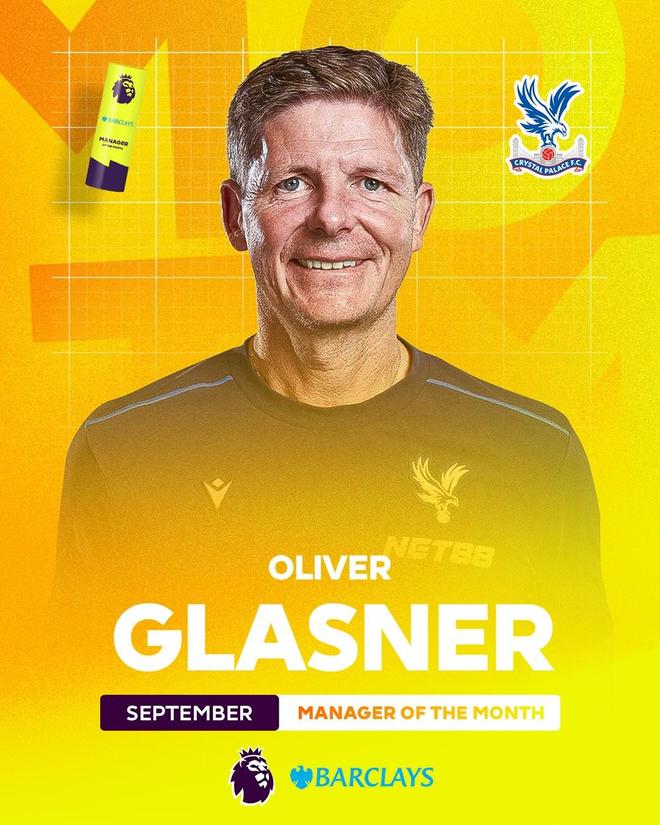 - 英超 | 官方:水晶宫主帅格拉斯纳当选英超9月最佳教练