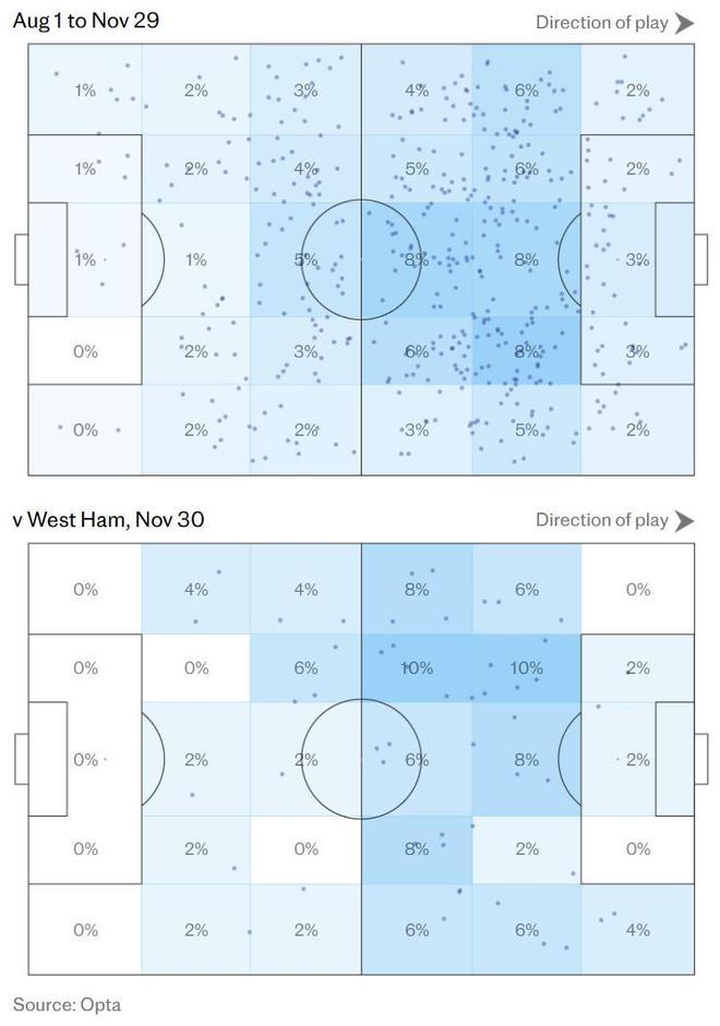 在无球时,利物浦也能以更多人数包围对手实施反抢。一个有趣的数据是:维尔茨本场在进攻三区及传入禁区的关键传球数,其实与他本赛季的平均水平相近(他仍在等待英超首次助攻)。但这并不能反映他本场比赛在速度、决策准确性和身体对抗上的全面提升。