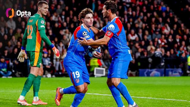 欧冠联赛阶段第6轮,马德里竞技客场对阵埃因霍温,上半场阿尔瓦雷斯破门为马竞扳平比分,至此,阿尔瓦雷斯马竞生涯已打入11粒欧冠进球,队史仅次于格列兹曼。