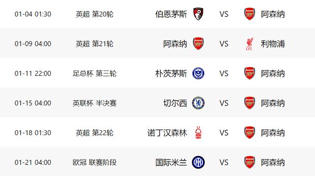 不过阿森纳也不能大意,因为接下来,他们还将面临魔鬼赛程。从本周末开始,到欧冠客场大战国米,在差不多17天的时间里,阿森纳要踢6场恶战。虽然伯恩茅斯实力不算太强,但是本赛季他们9个主场仅有1败,上赛季阿森纳就在客场输给这个对手,这场比赛阿森纳随时可能再丢分。之后对阵利物浦,阿森纳同样可能会遇到麻烦。打完利物浦之后,阿森纳就将出战足总杯,虽然朴茨茅斯是低级别联赛的对手,但是足总杯向来是冷门的温床,阿森纳如果轮换太多主力,随时会翻车。接下来和切尔西的联赛杯半决赛首回合比赛,阿森纳也不容有失。